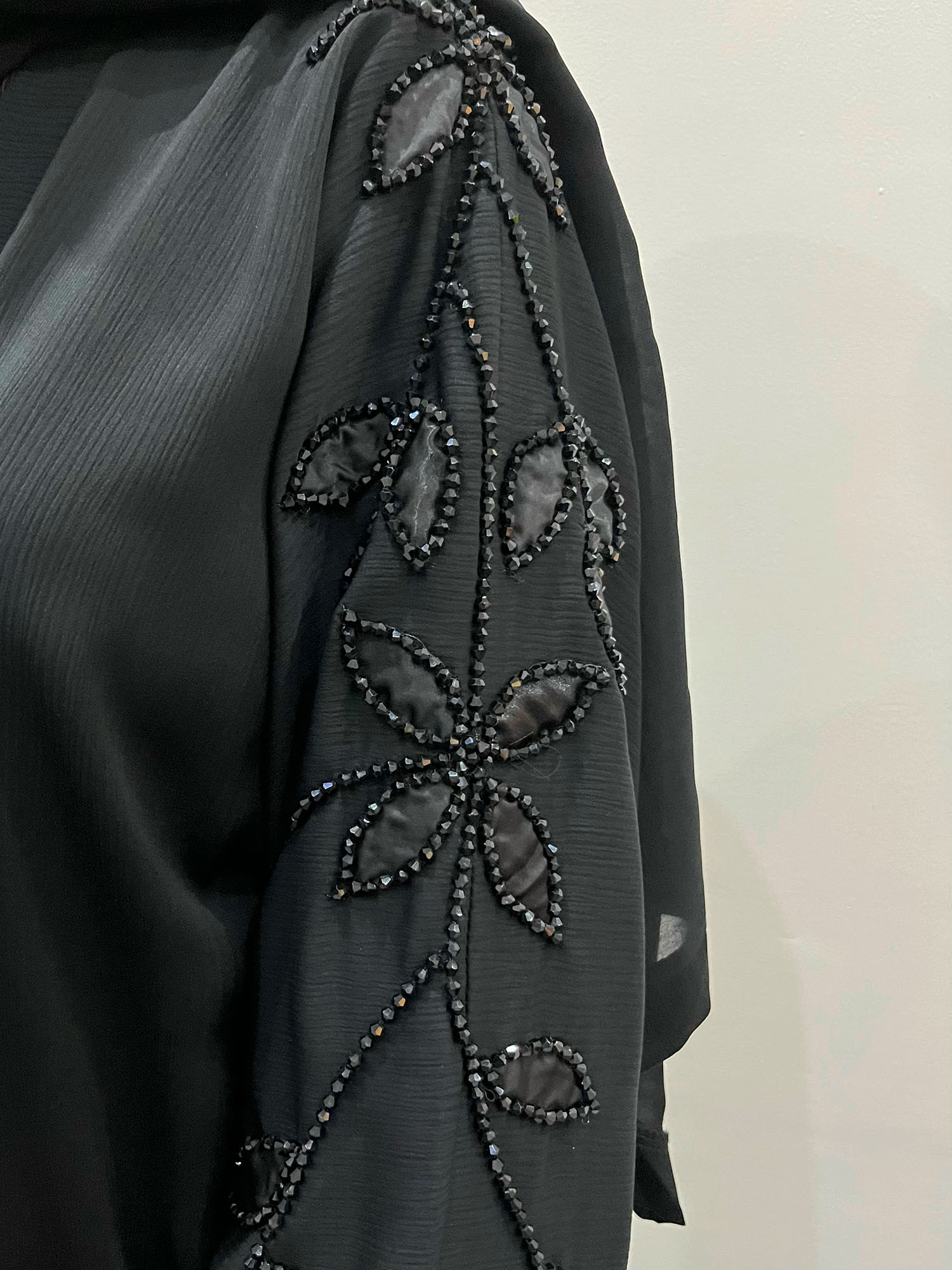 Amani’s Black Leave Embellished Open Abaya