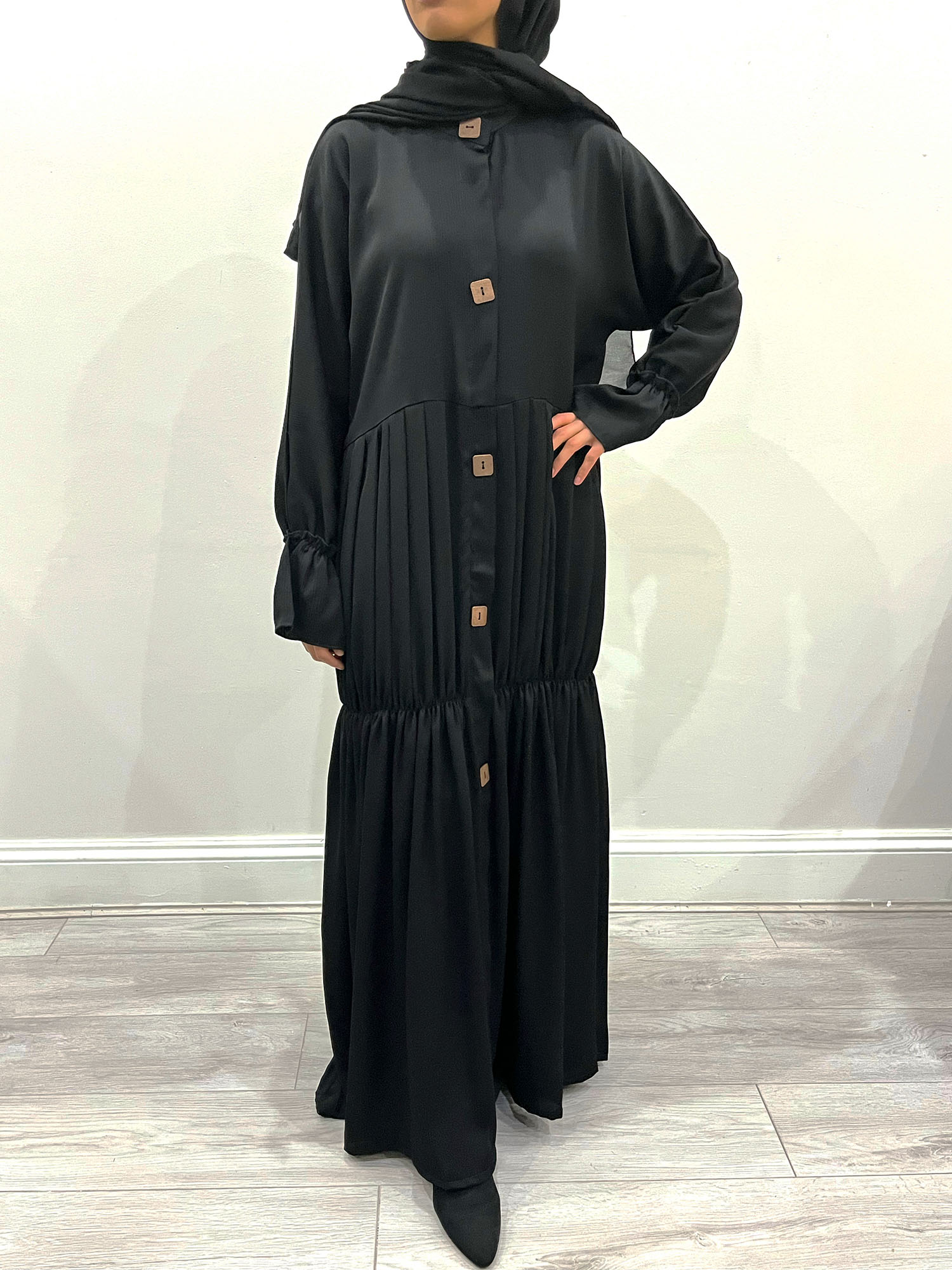 Amani’s Black Pleated Open Abaya