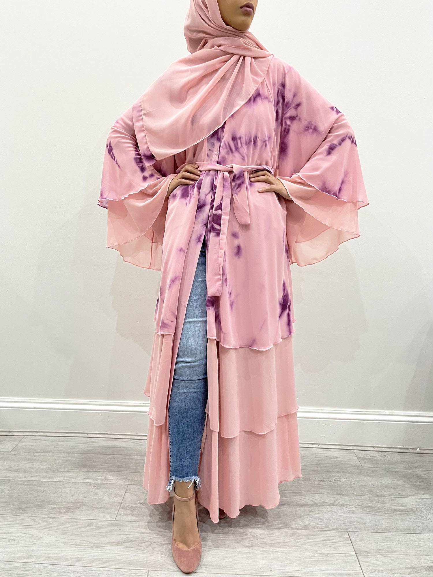Amani’s Pink Lemonade Dye Tie Layered Open Abaya