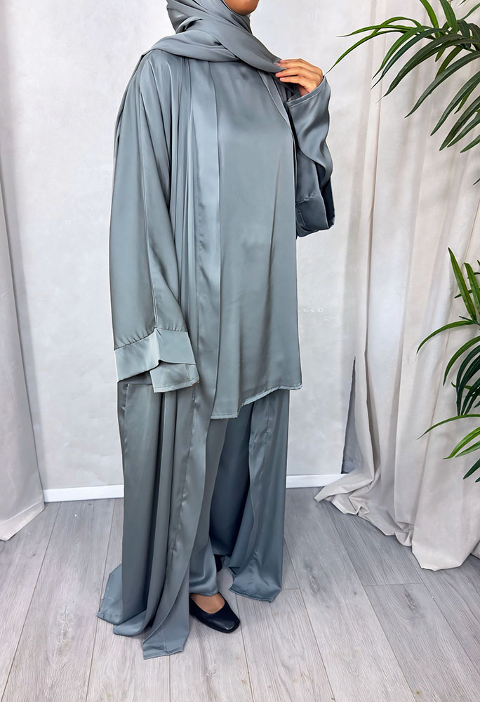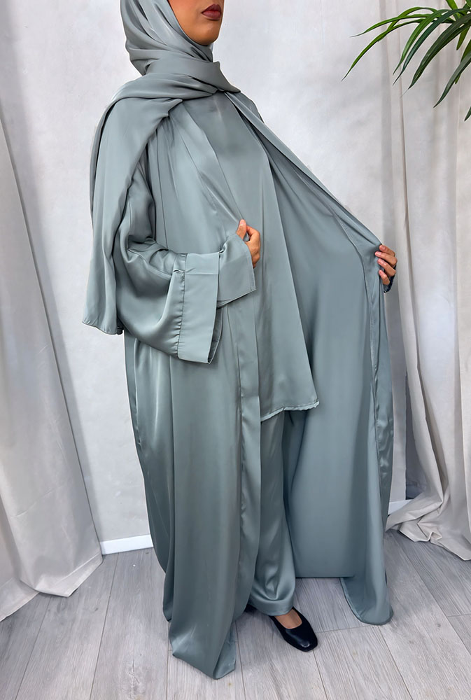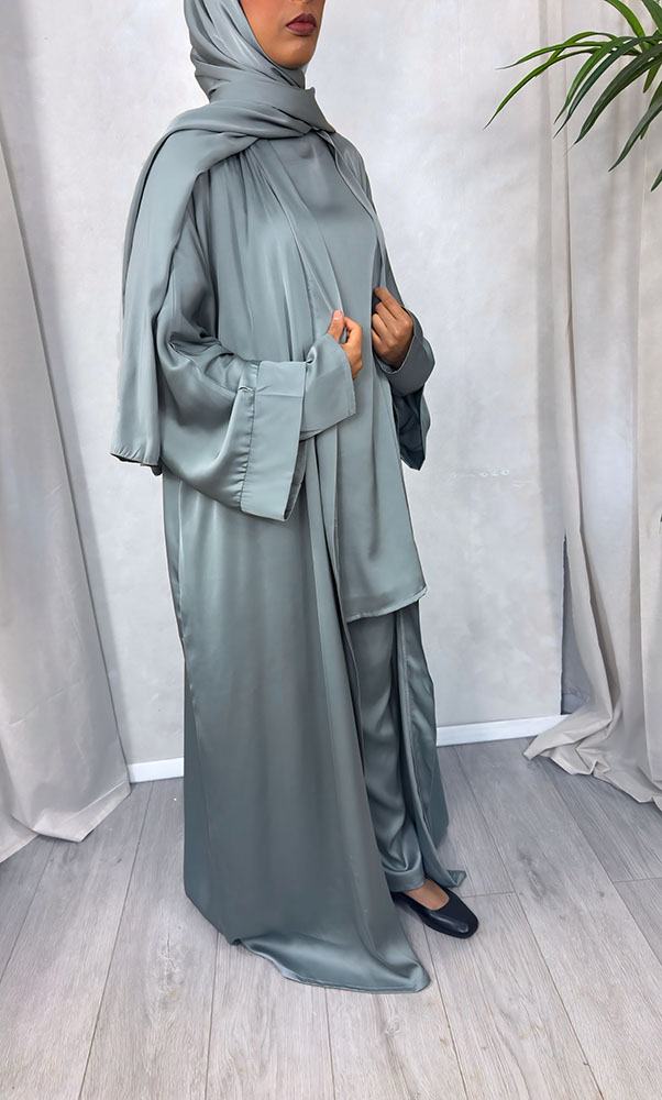 Armani Satin 4-Piece Abaya Set – Dark Sage