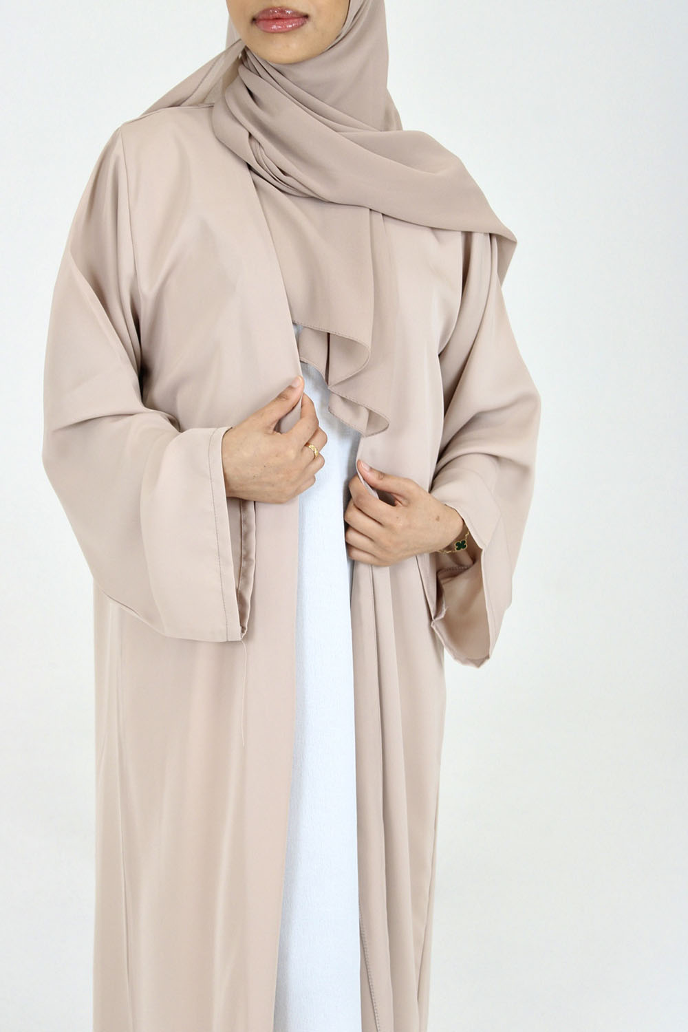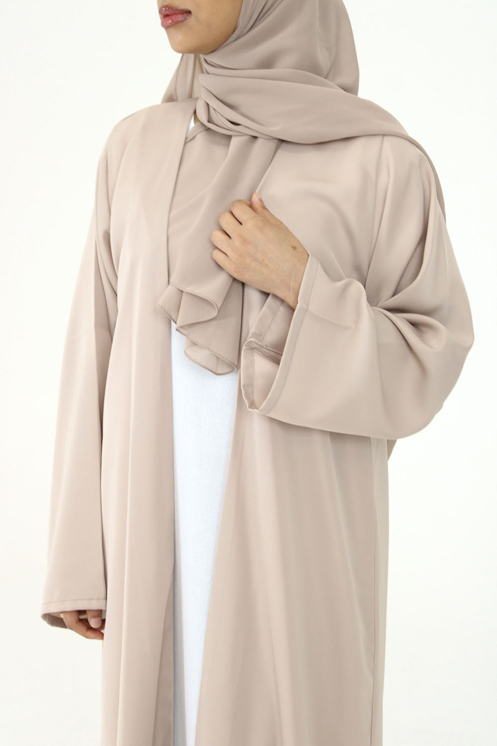 Introducing our versatile and easy to wear duster style open abaya with matching scarf. Wear this over a maxi for a perfect outer wear.