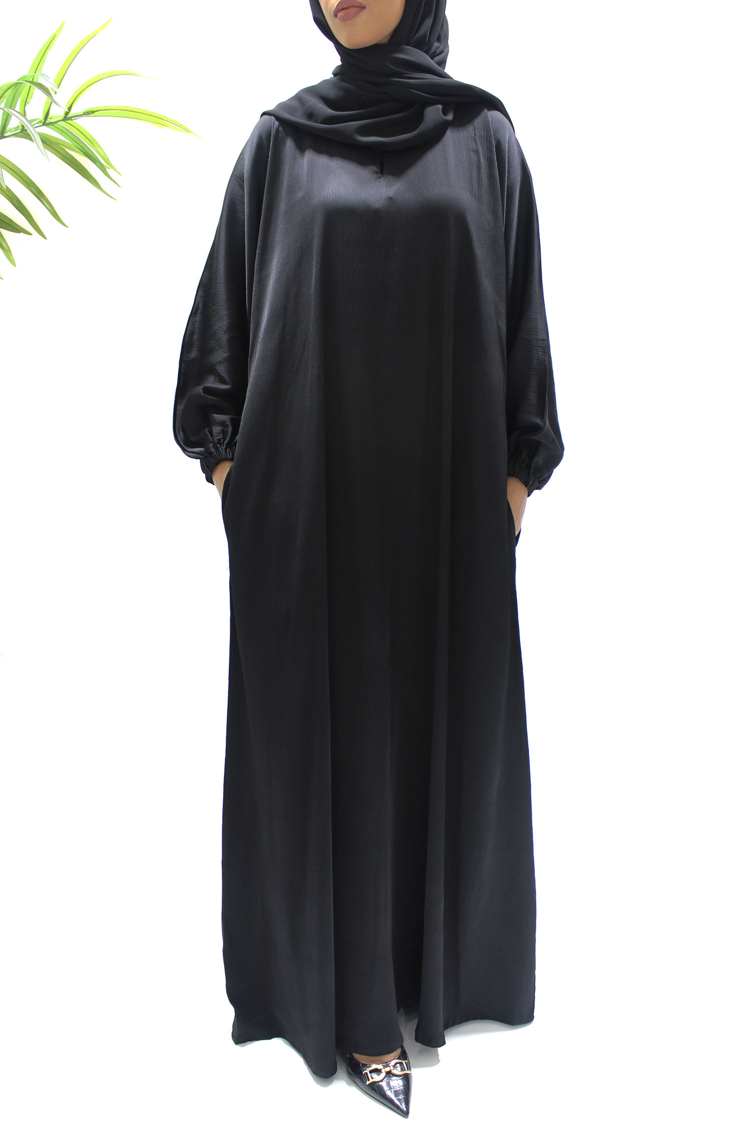 Introducing our Black Textured Satin Abaya, designed to blend sophistication with comfort. Crafted from premium textured satin, this abaya is as stylish as it is functional. With convenient pockets and elasticated cuffs, it’s versatile enough for day-to-night wear. The included hijab adds a complete look, making it a perfect choice for any occasion. Enhance your wardrobe with this elegant and practical piece.