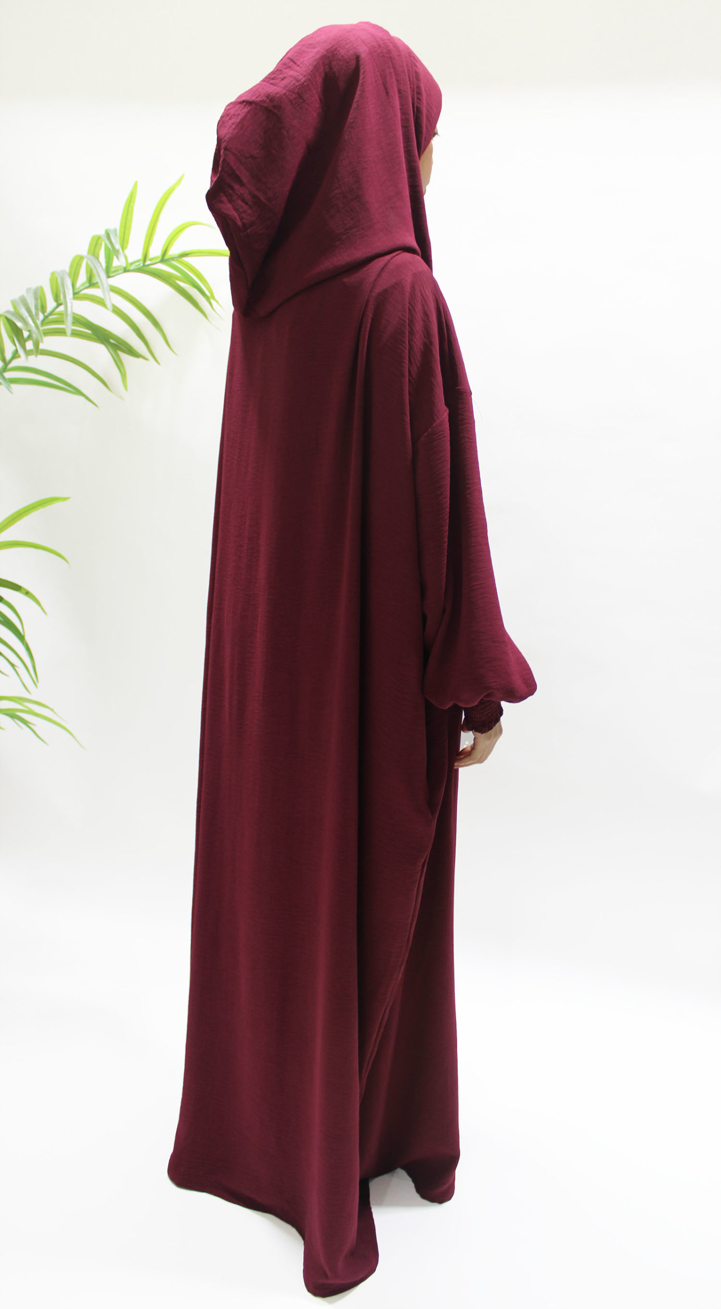Double Hooded Prayer Abaya With Pockets – Burgundy