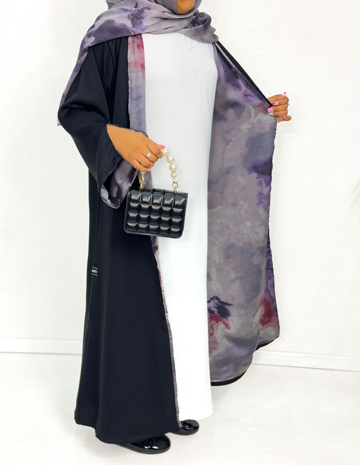 Exclusive Open Abaya With Satin Chiffon Lining – Purple