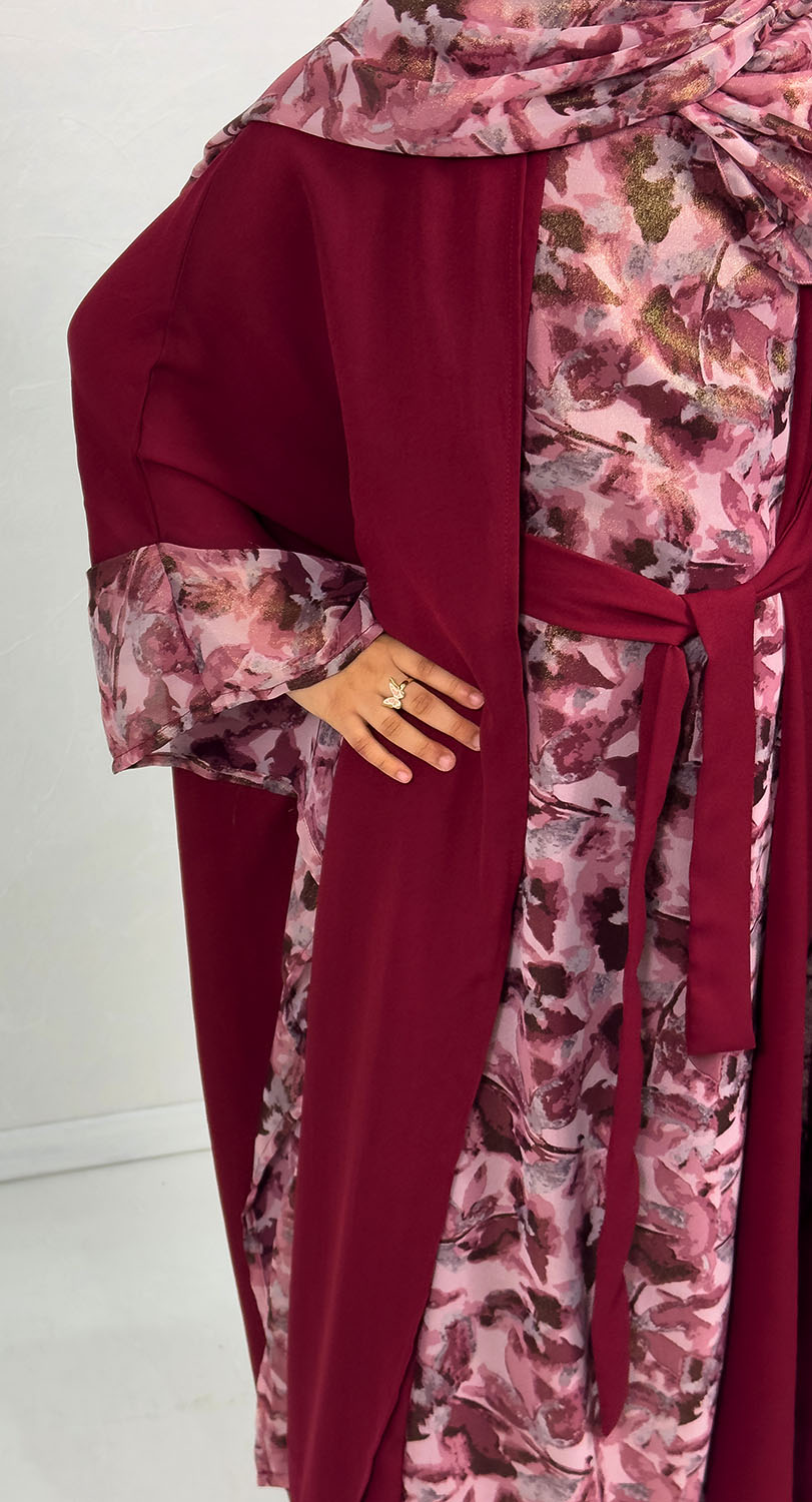 Farasha Style Four Piece Abaya Set – Wine