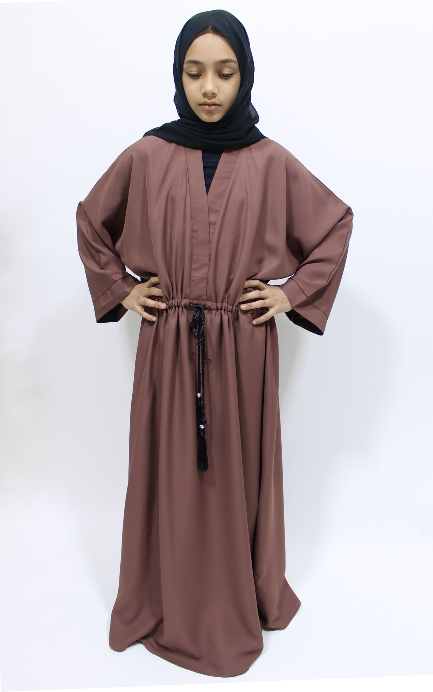 Girls Dark Blush Draw String Abaya – Kids Abaya