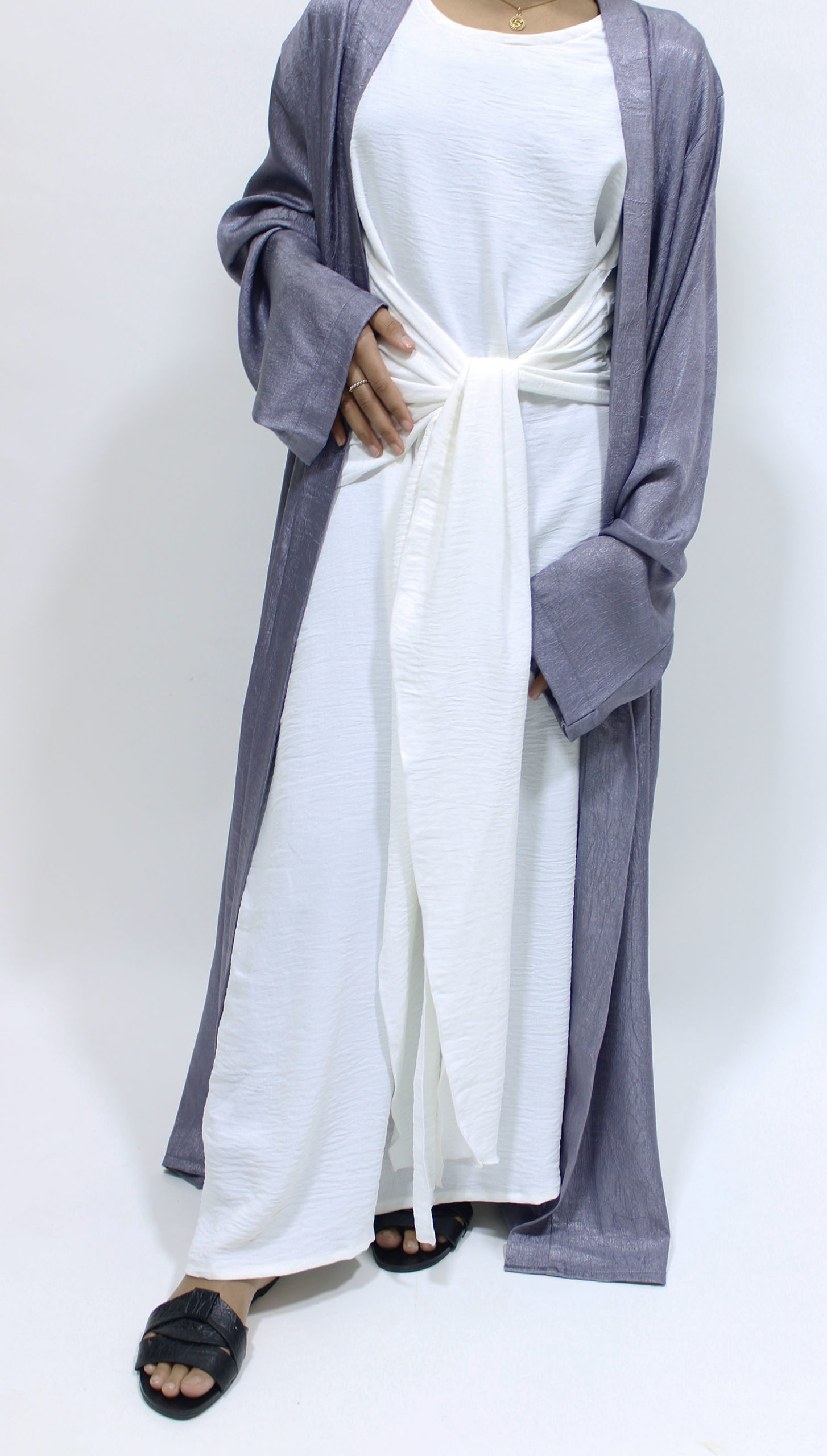 Enhance your little one’s wardrobe with our elegant Girls Open Jacket Abaya Set in Lilac. This set, crafted from shimmering polyester fabric, includes an open abaya, an inner dress, and a matching kids’ size scarf. The lilac color brings a soft, feminine charm that’s perfect for Eid, family gatherings, or any formal event.