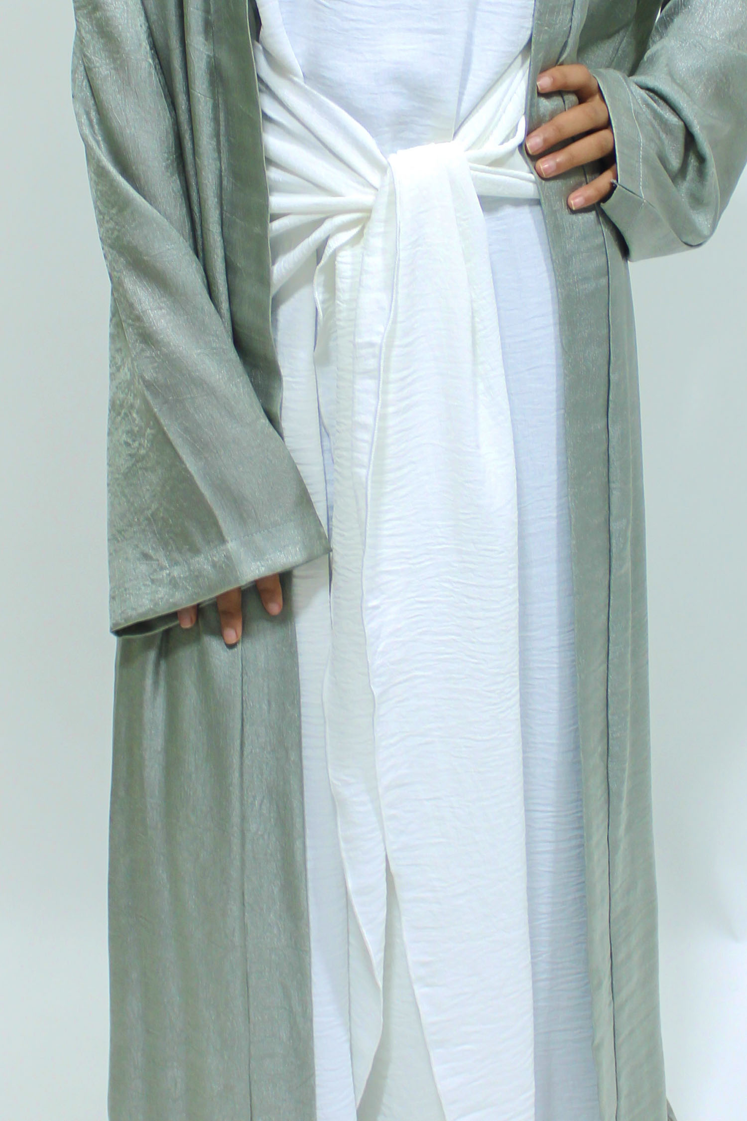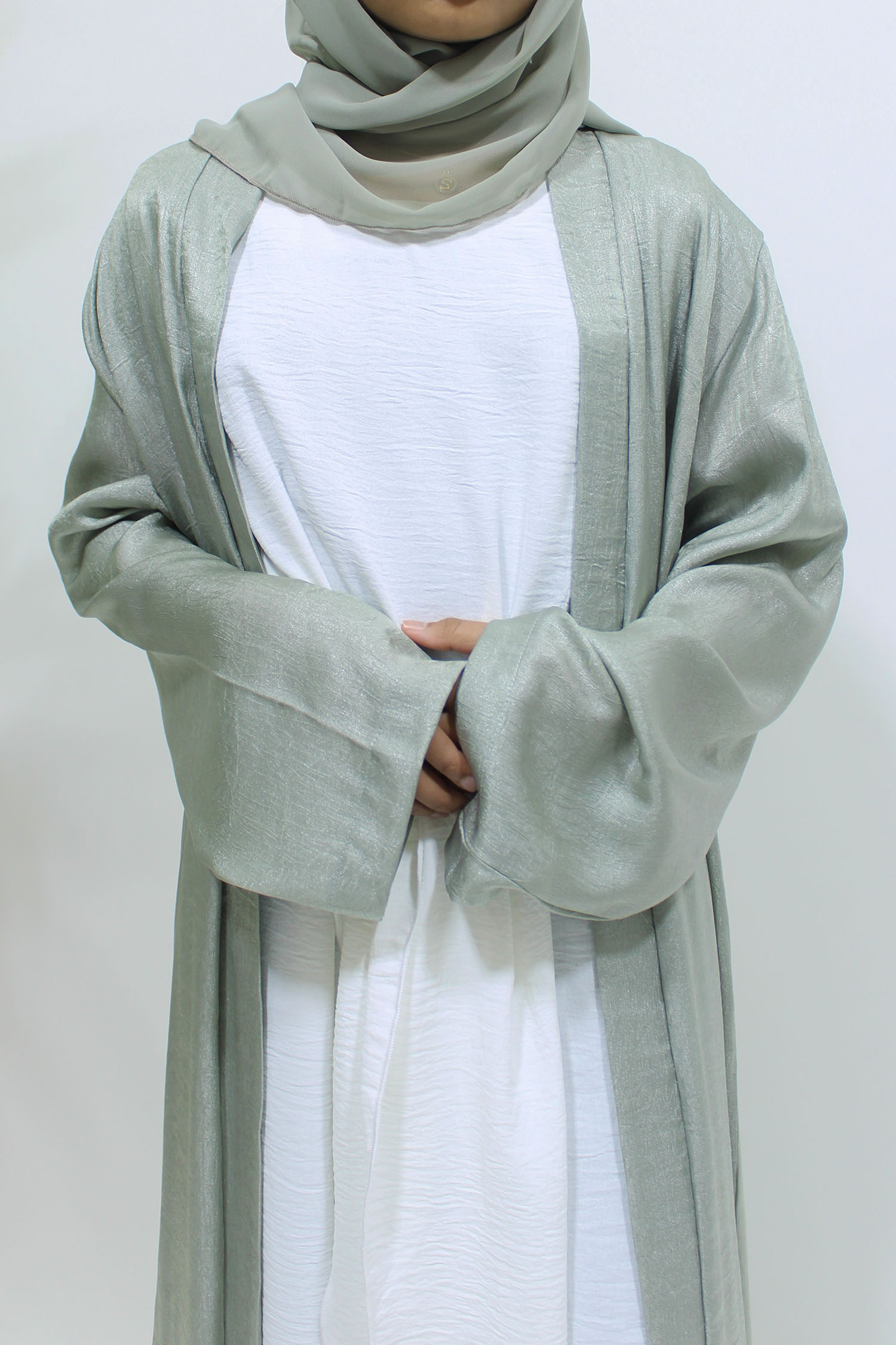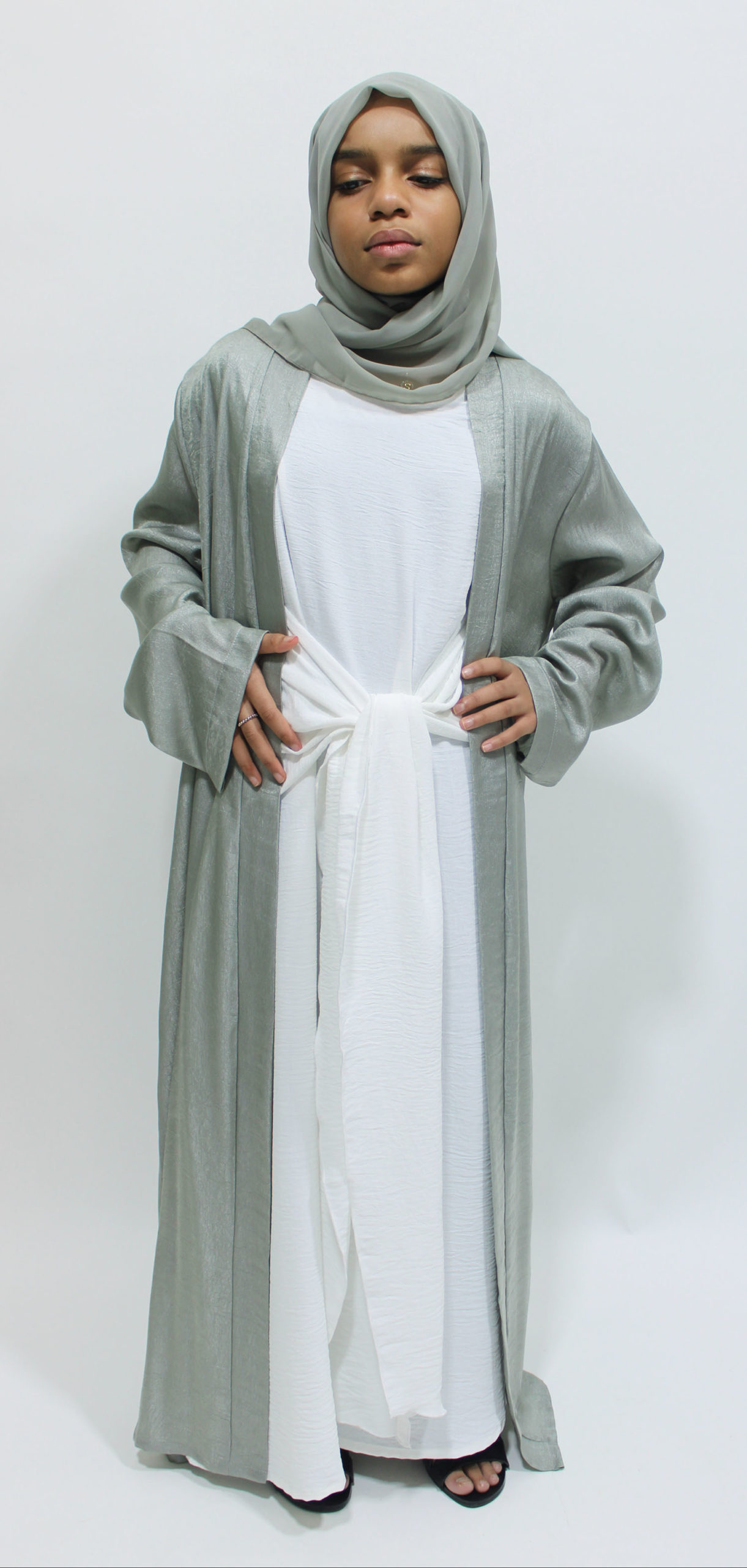 Girls Open Jacket Abaya Set – Sage Green