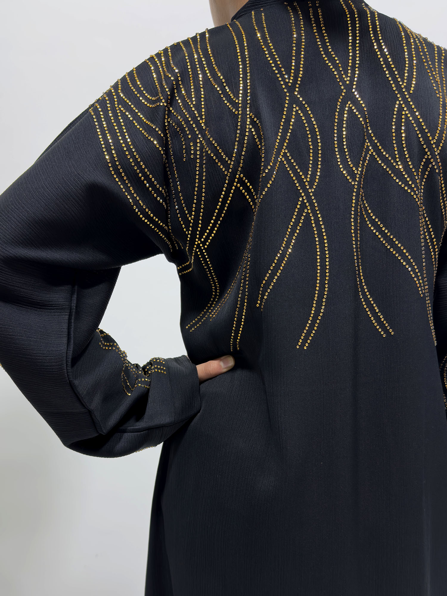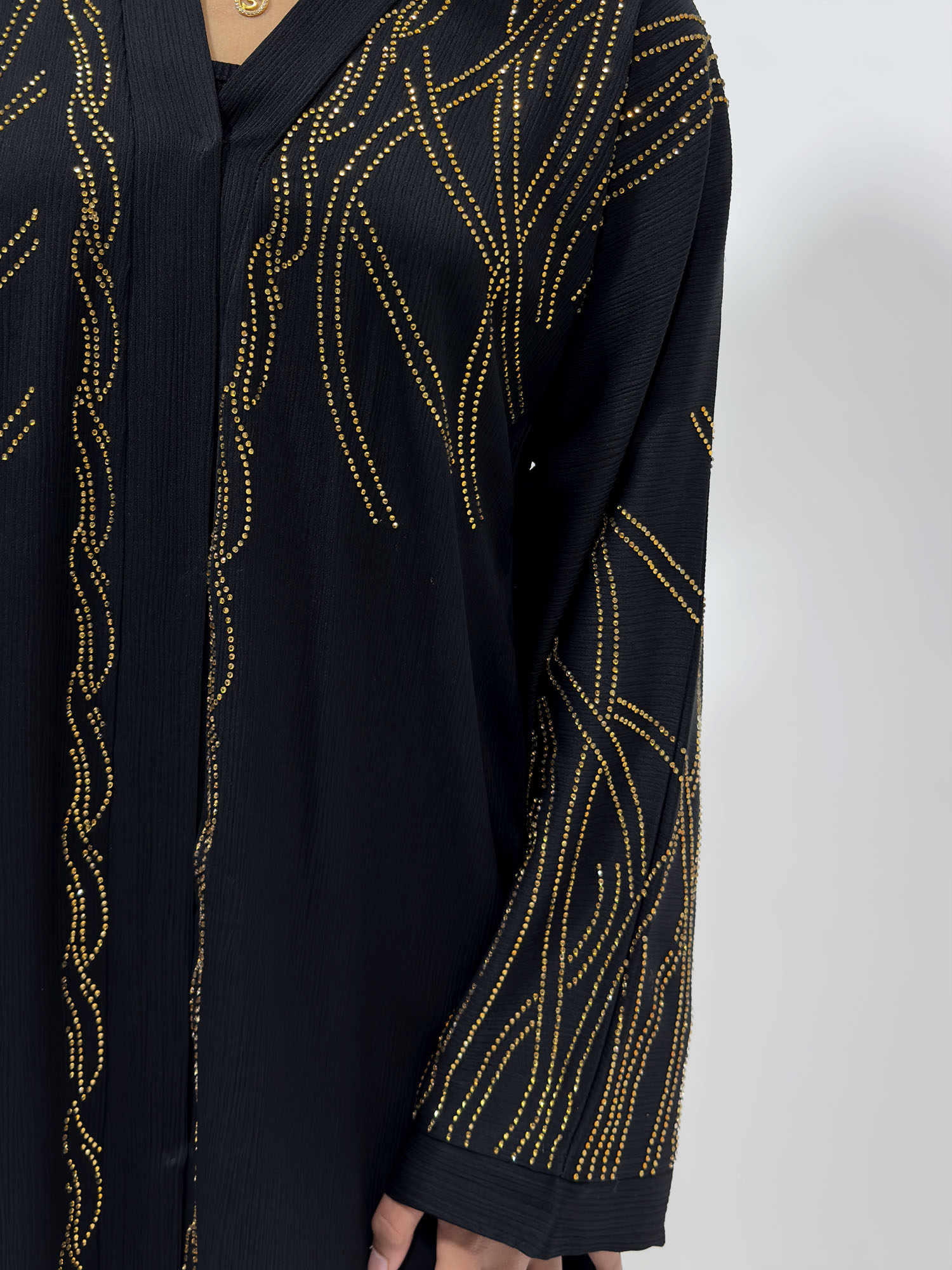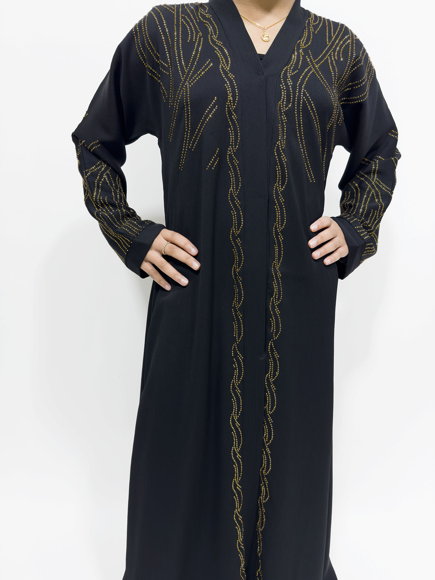 Gold Embellished Open Abaya – Black