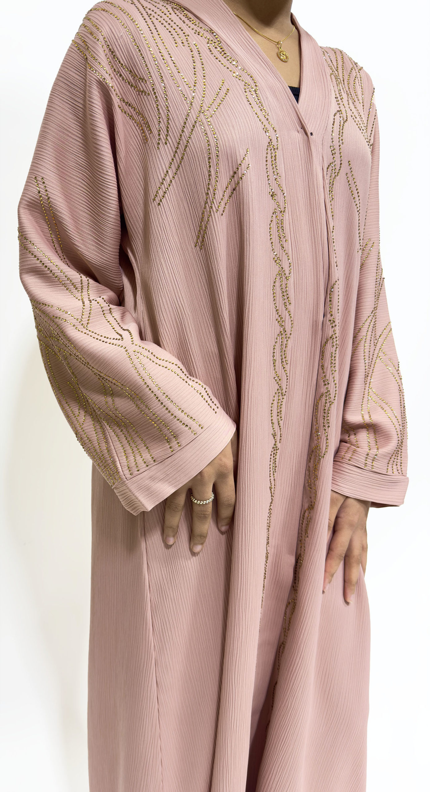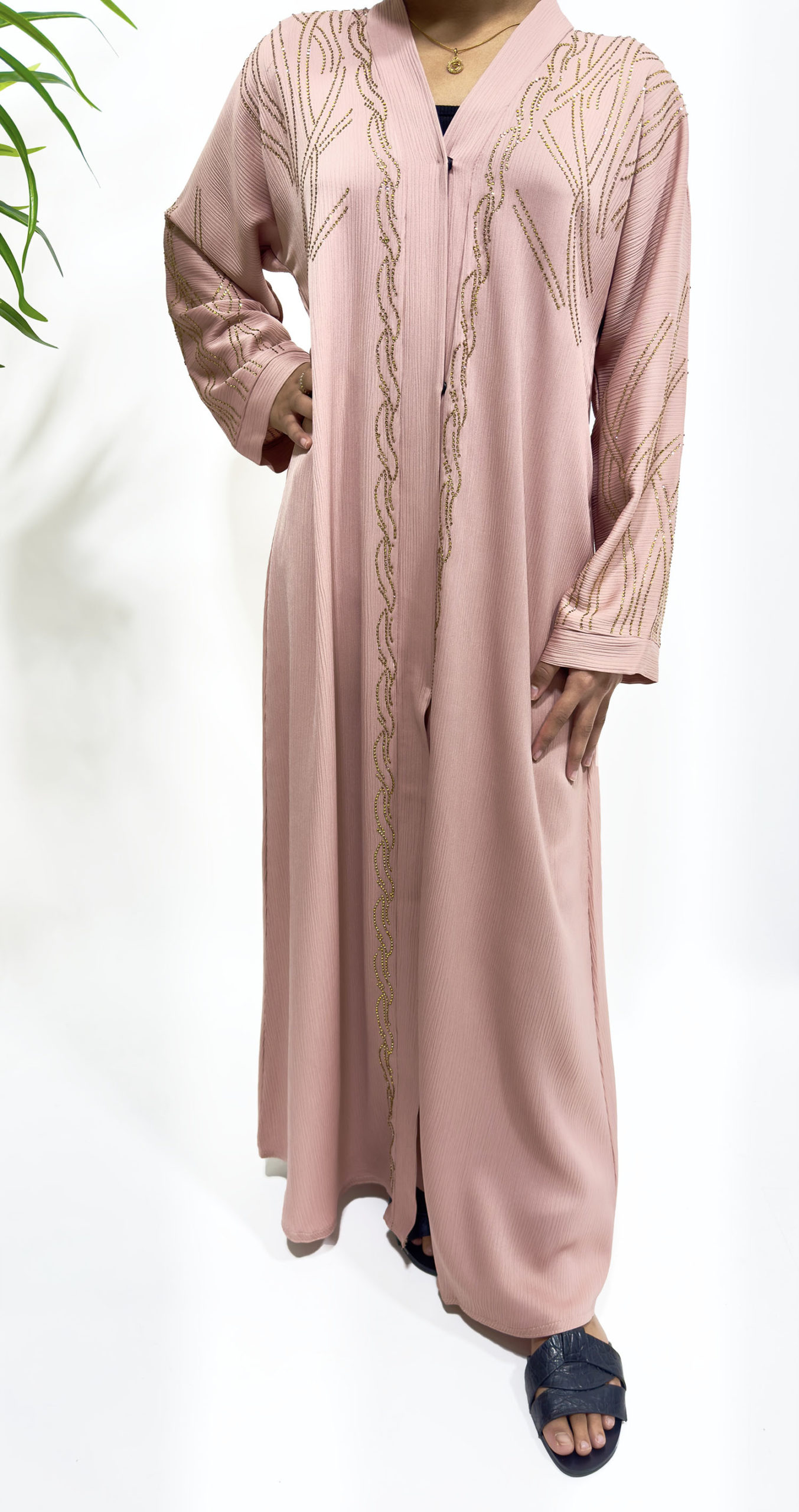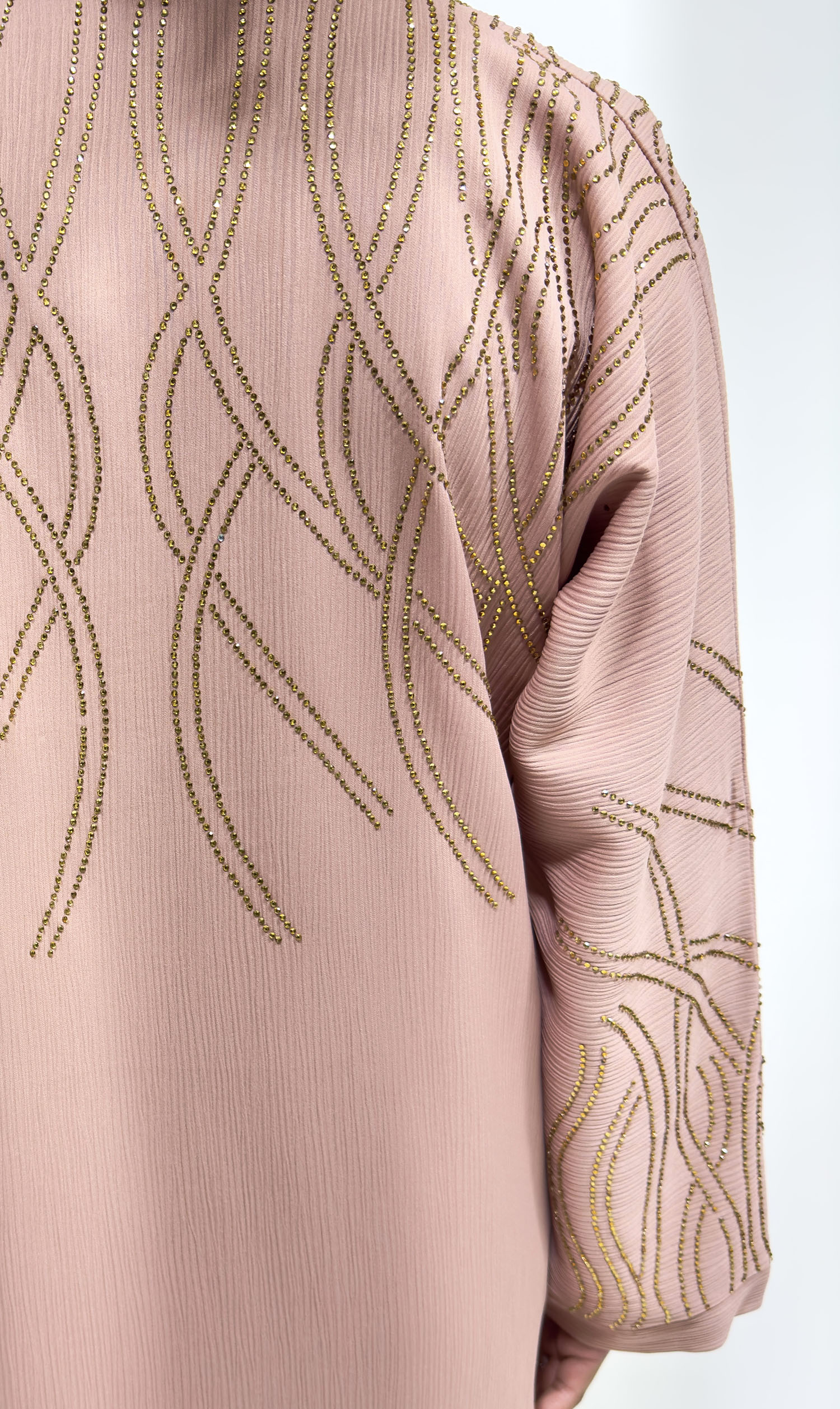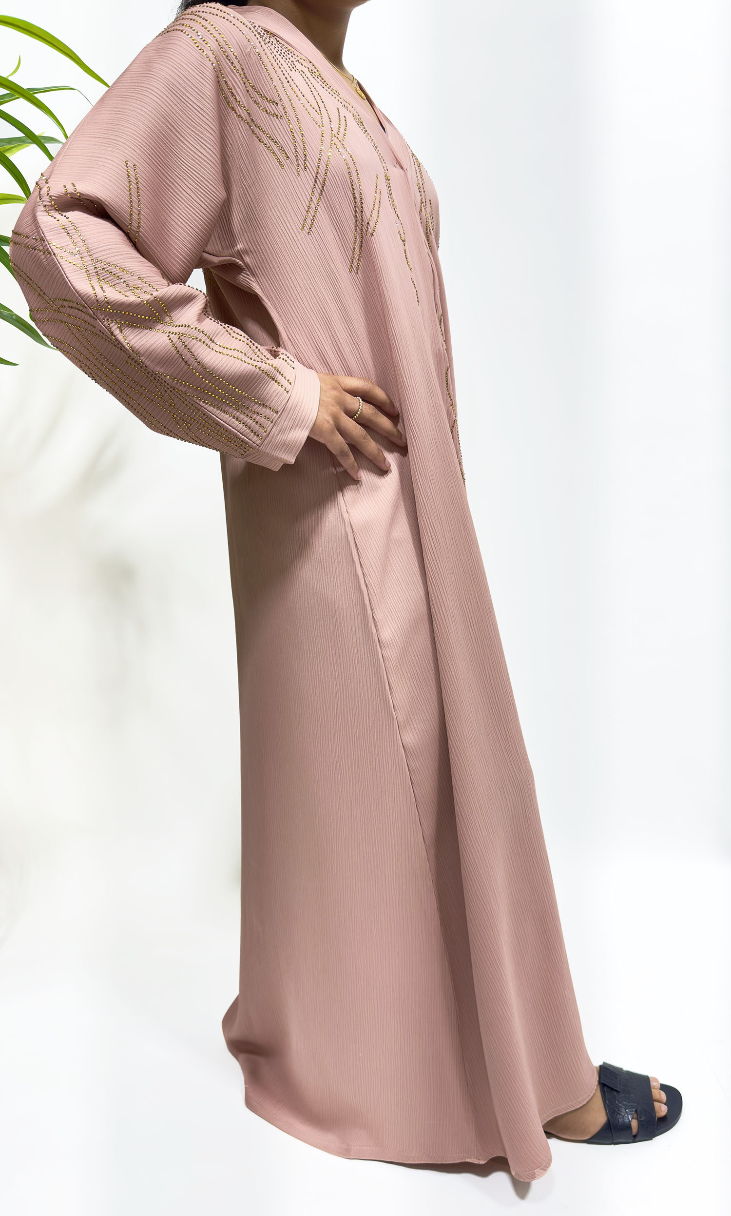 Gold Embellished Open Abaya – Blush