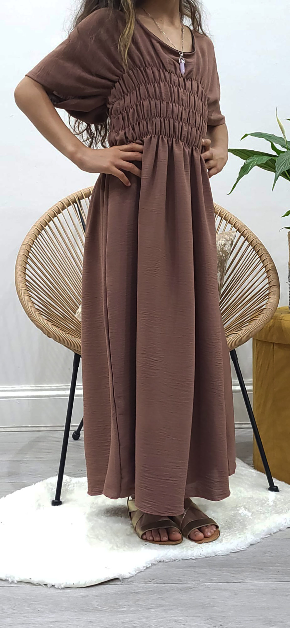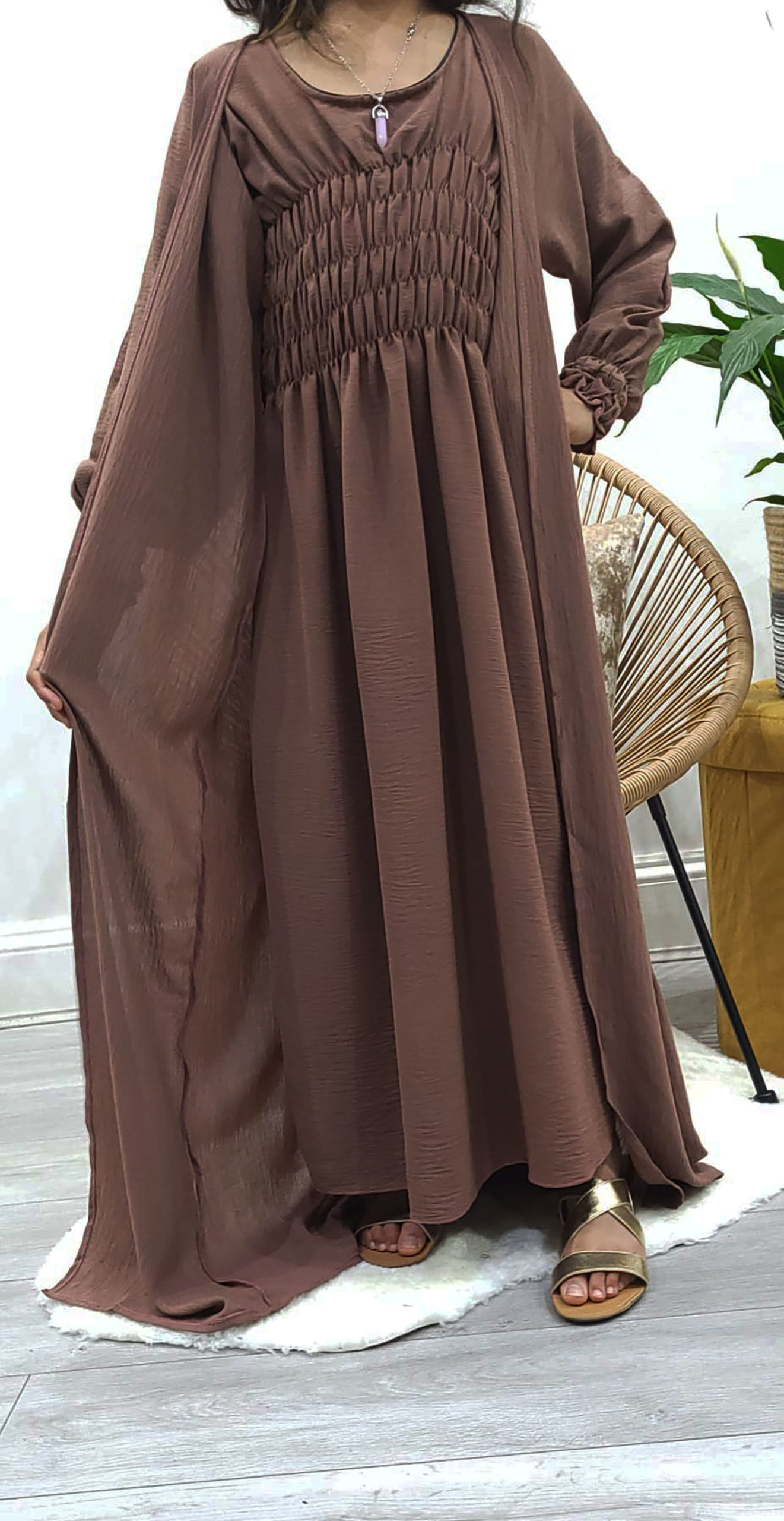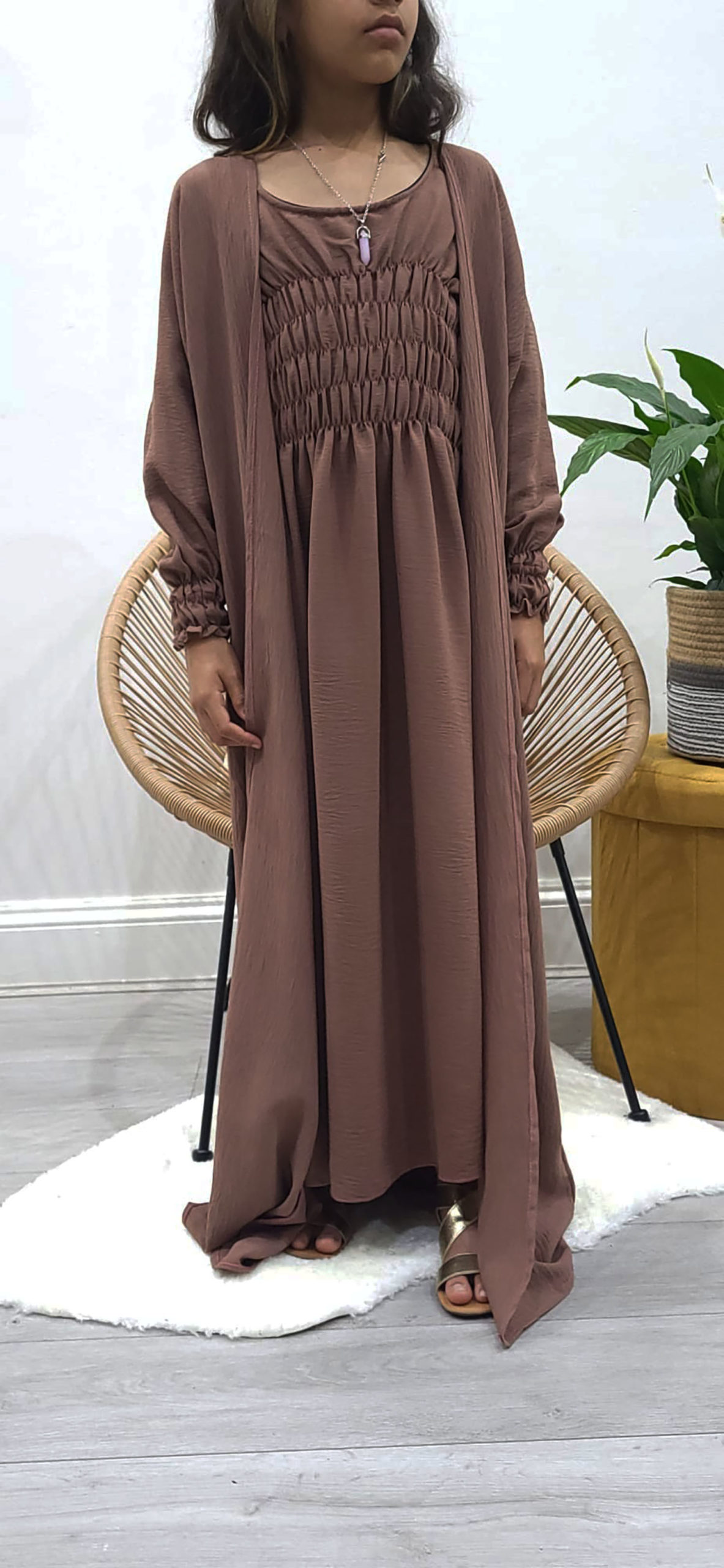 Kids Two-Piece Russett Brown Jacket Style Abaya With Belt