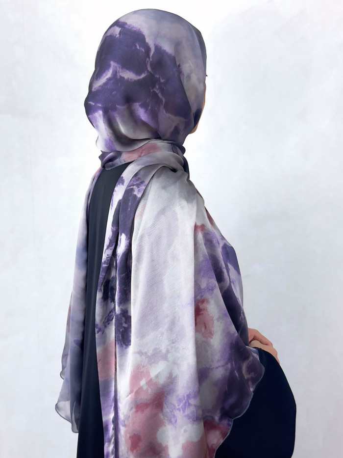 New Open Abaya with Satin Chiffon Lining – Stunning Purple Hues