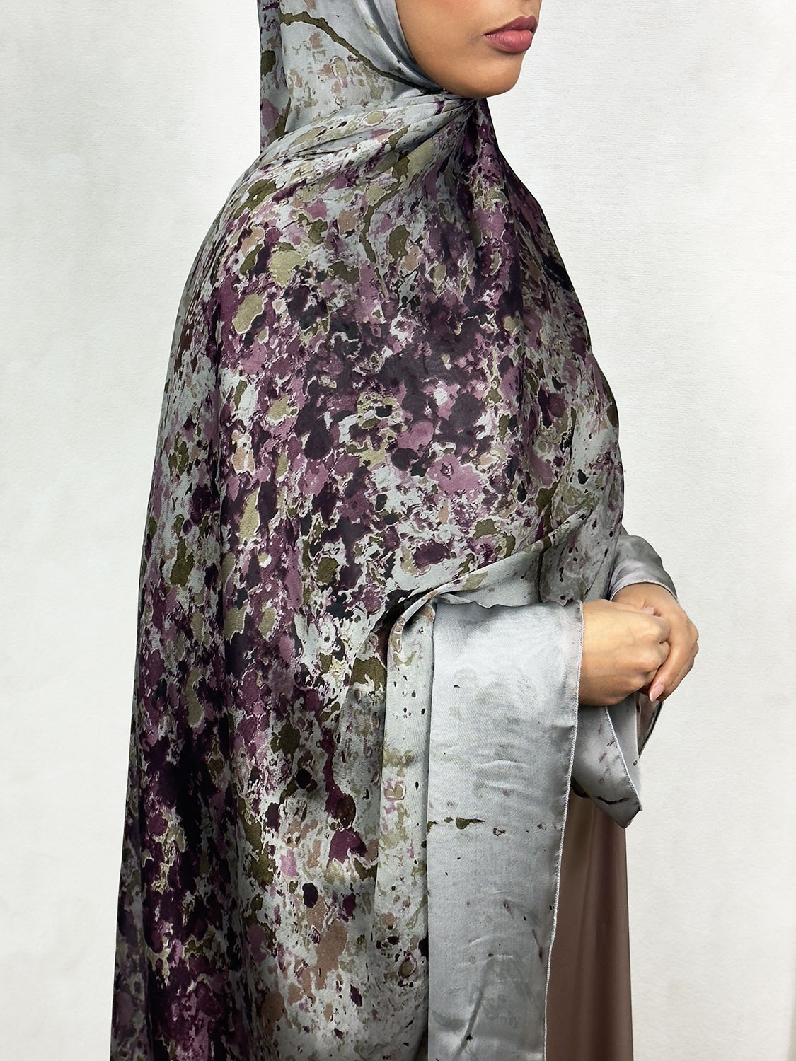 NEW XL Alcohol Ink Satin Chiffon Scarf – Purple Hues