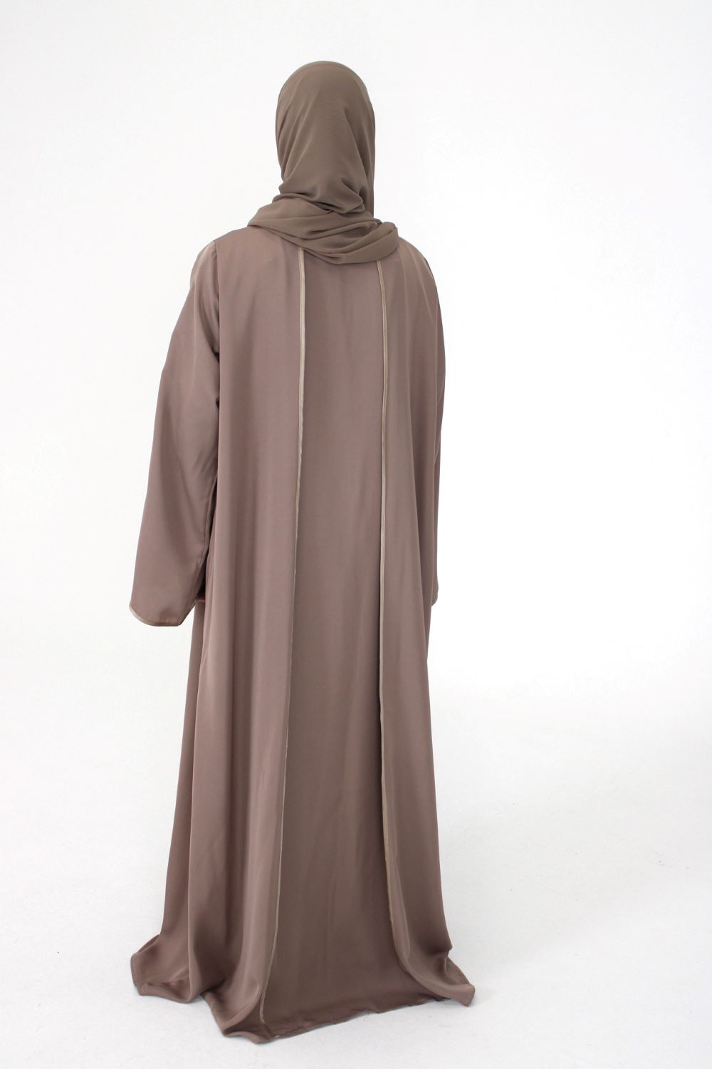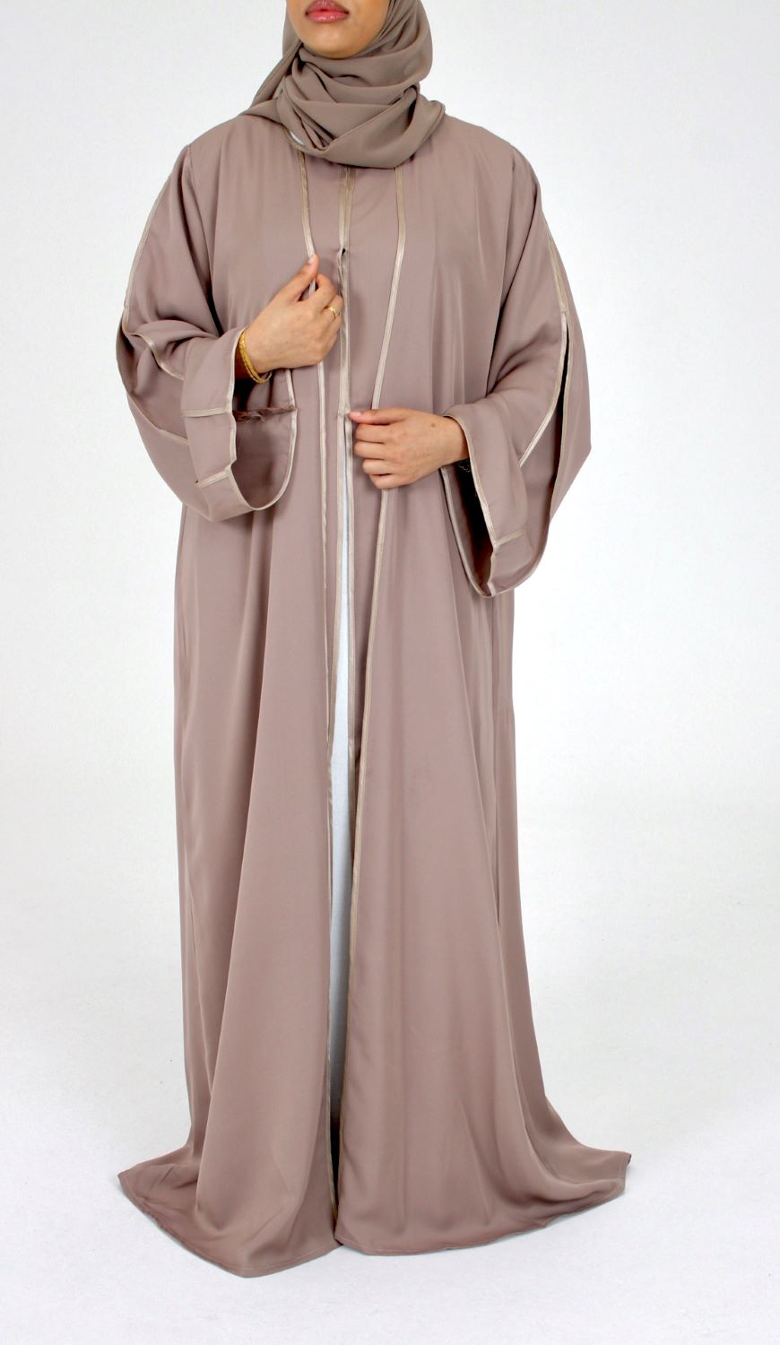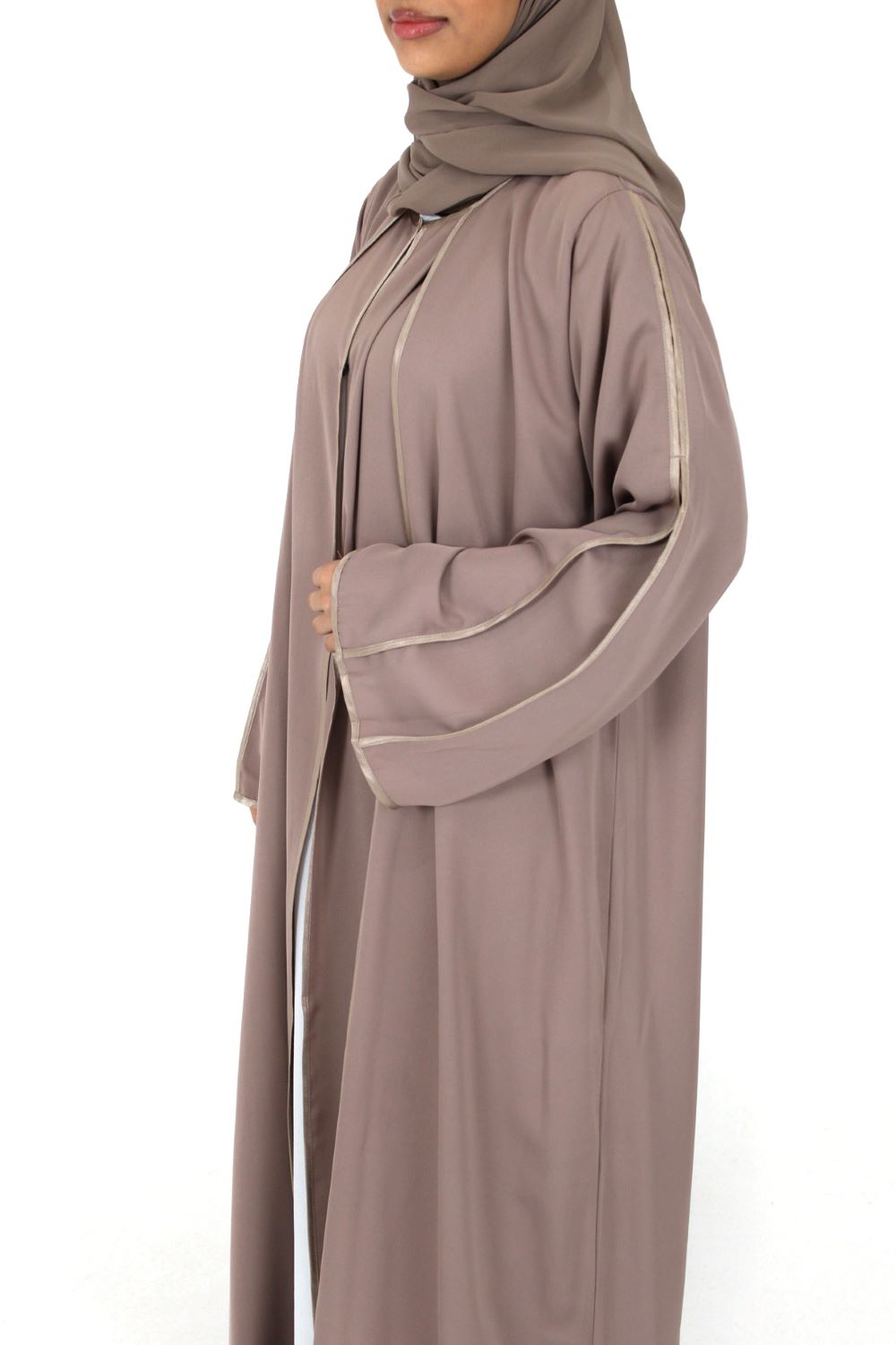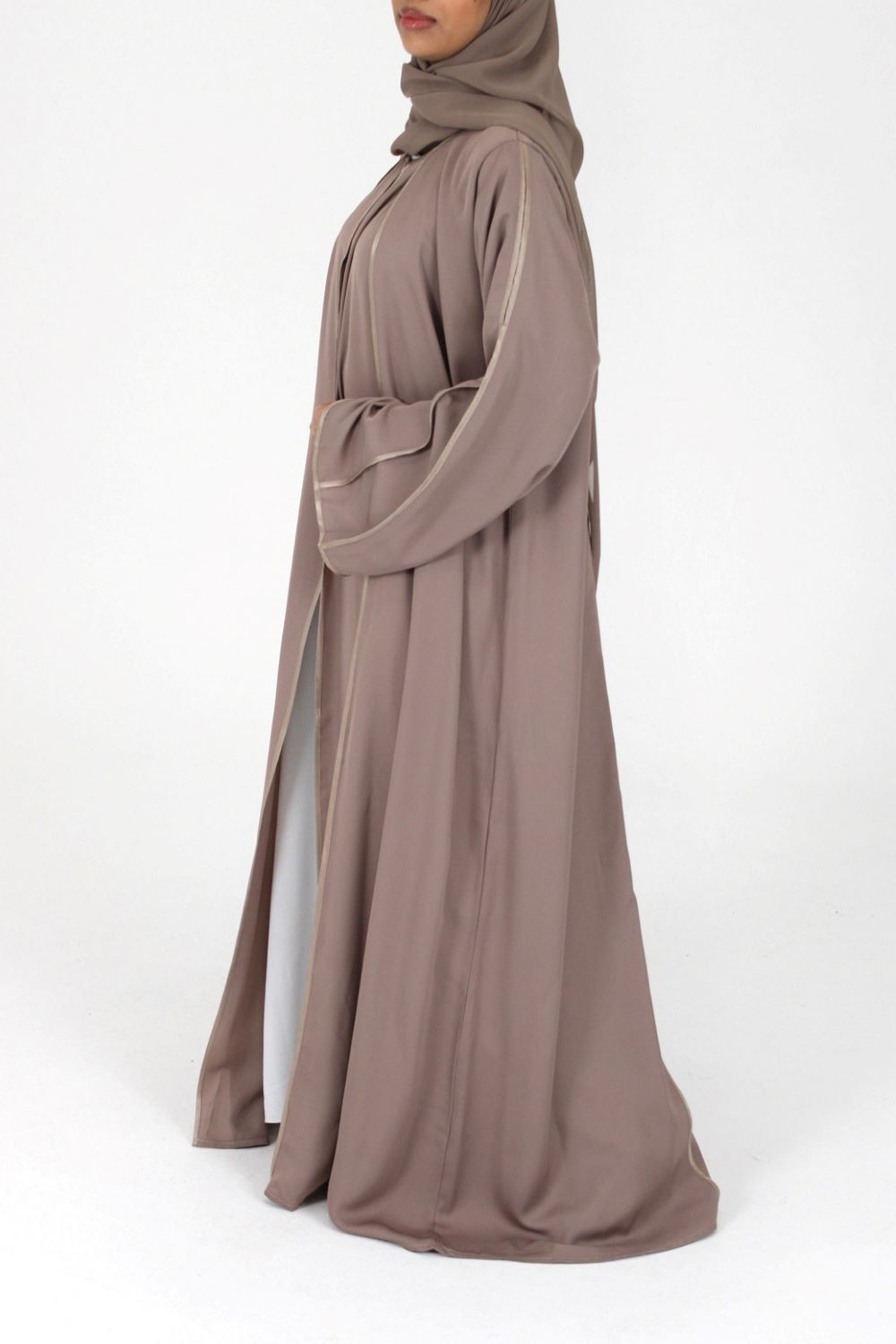 Open Abaya With Detailed Piping – Rose Taupe