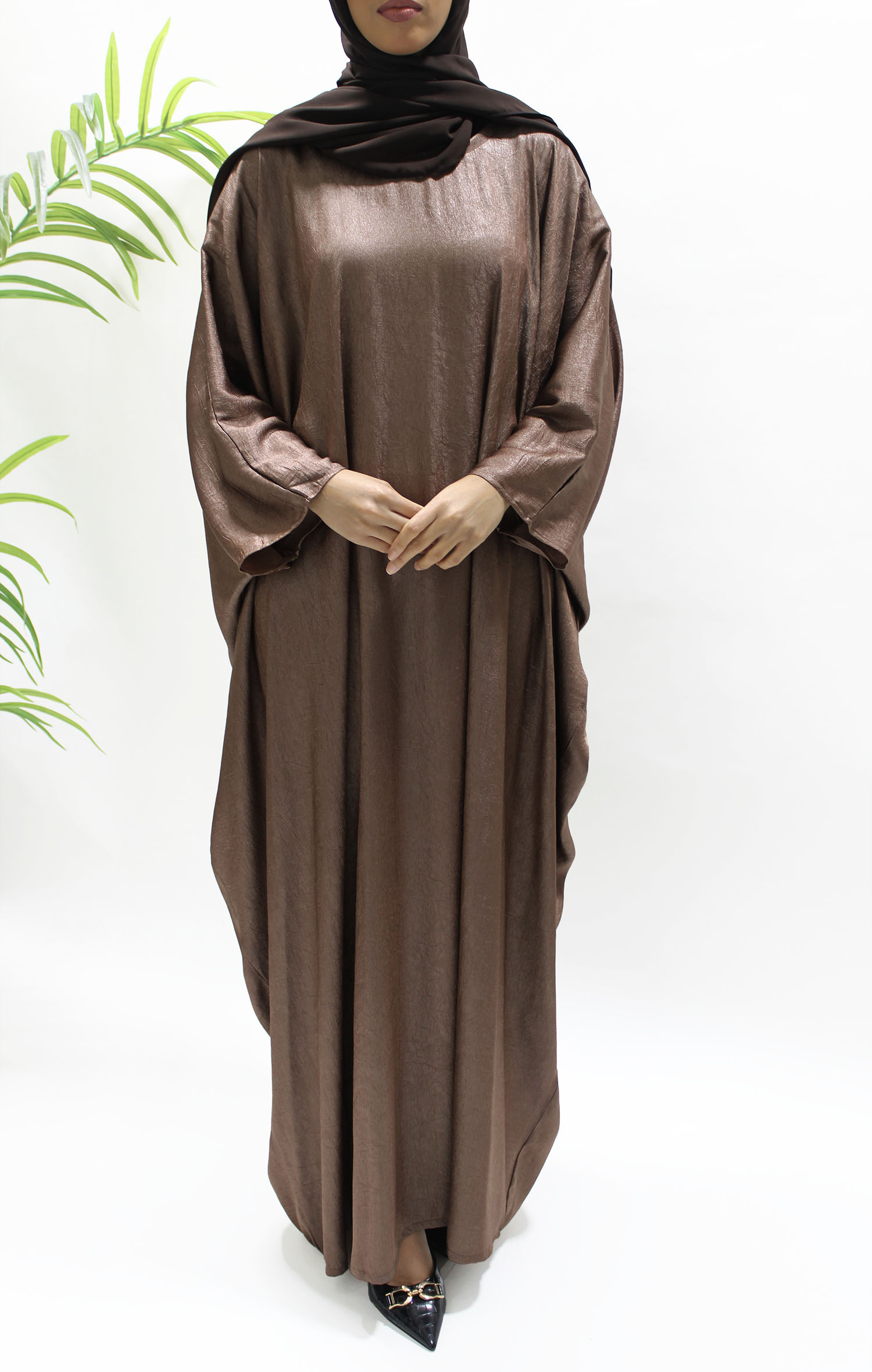 Discover refined elegance with our Premium Brown Farasha Abaya. This classic closed abaya is crafted from premium crushed polyester, offering a soft, flowing silhouette. Perfect for special occasions where understated sophistication is key.