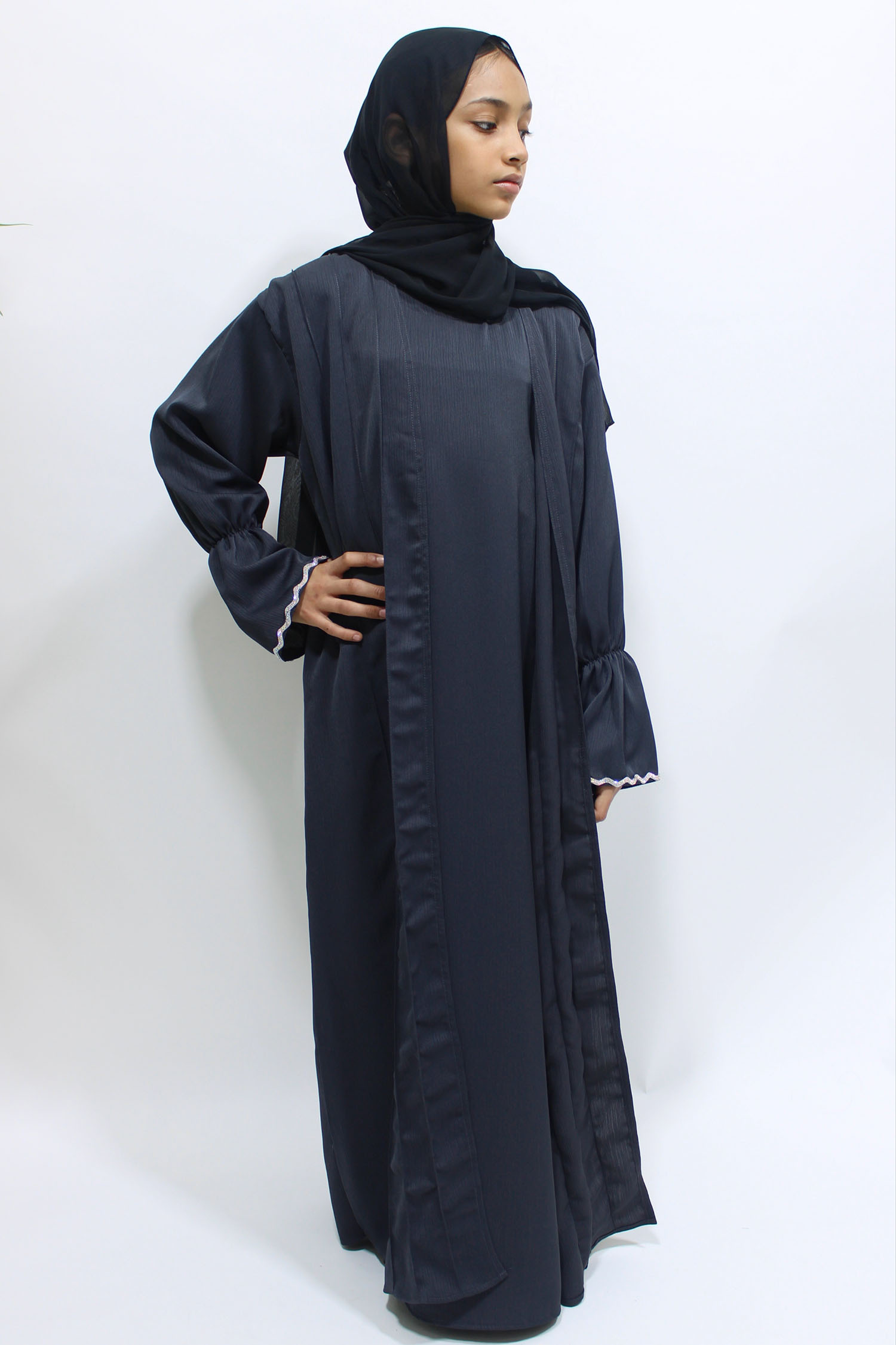 Two Piece Style Open Abaya – Dark Grey (Kids)