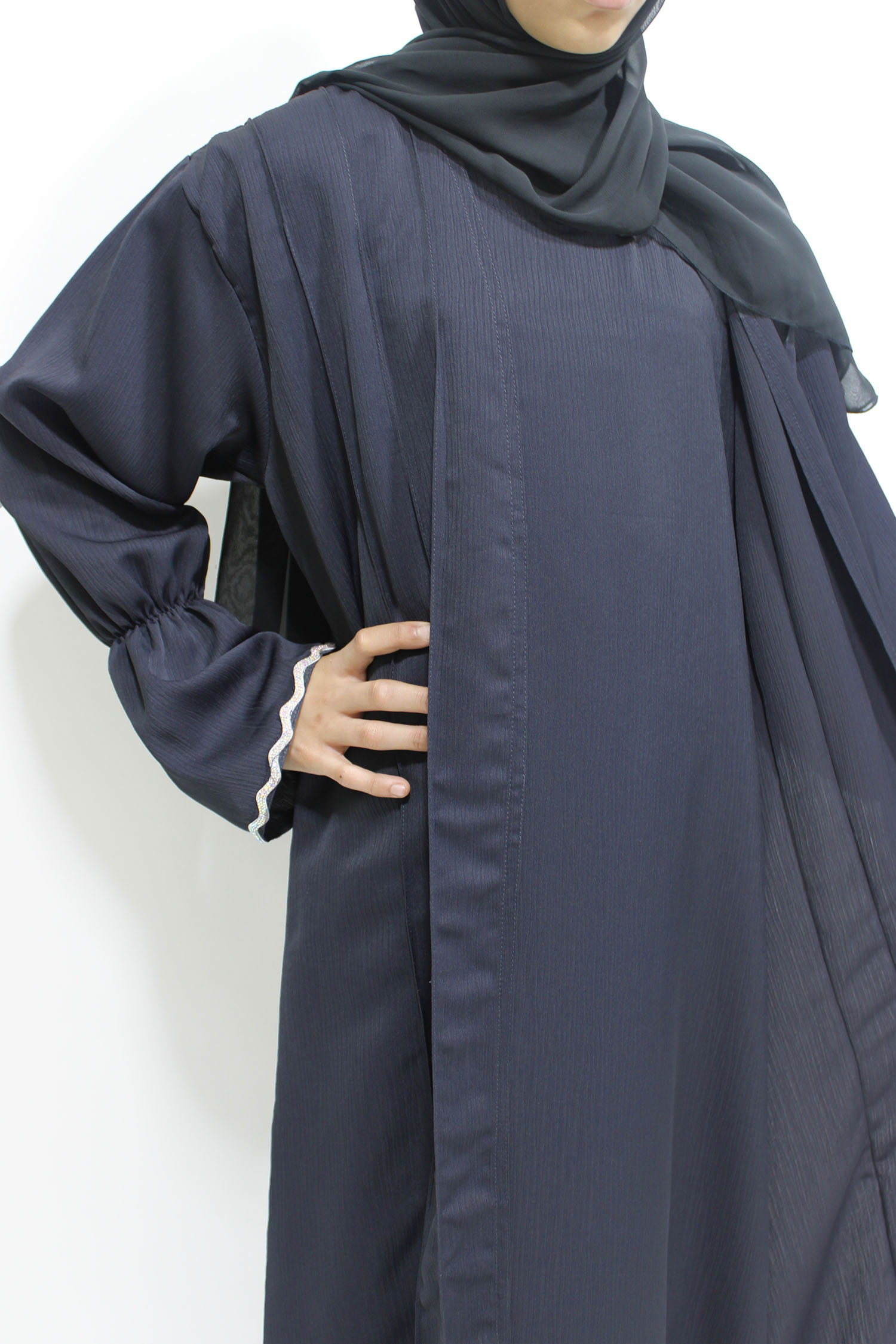 Two Piece Style Open Abaya – Dark Grey