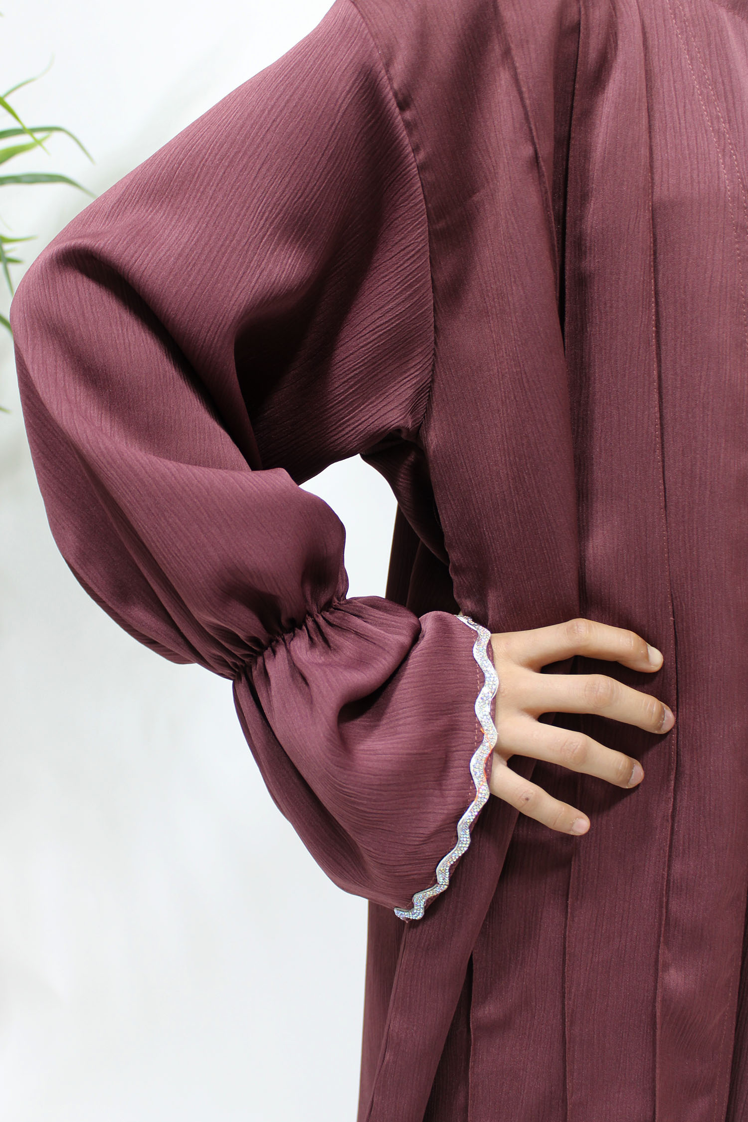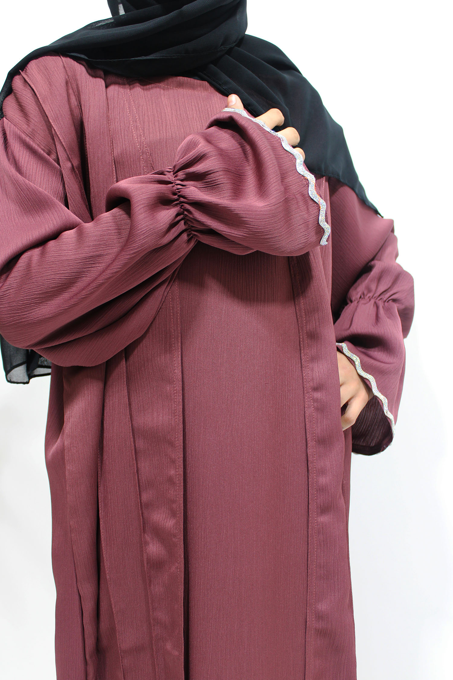 Two Piece Style Open Abaya – Plum
